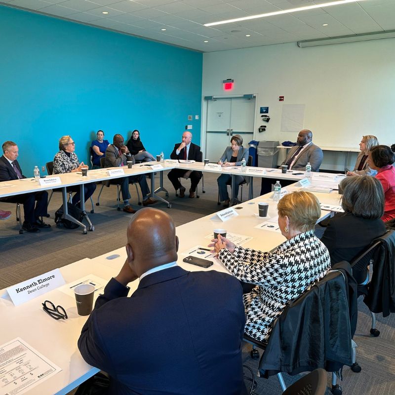 Last week I attended a round table with Governor Maura Healey, Secretary of Education Patrick Tutwiler, Undersecretary of Workforce Development Jennifer James Price,< and my fellow AICUM president's at the Edward M. Kennedy Institute. During our time together, we stressed the access we provide to underserved populations of Massachusetts students and how important it is that state funding include private higher ed institutions as well as public.