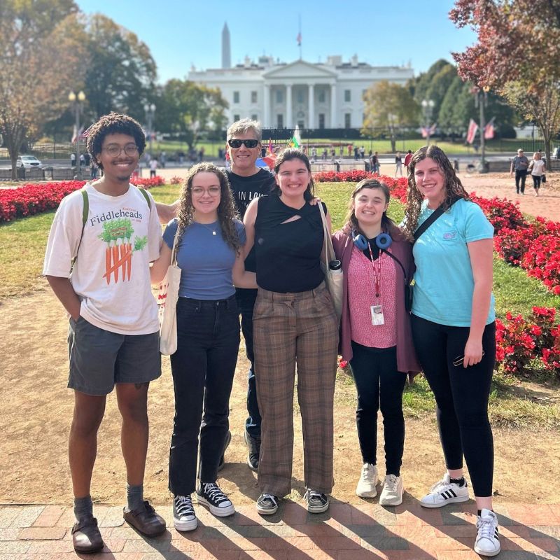 At the end of October, five Regis students and Dan Leahy, AVP of Mission, Ministry and Service, attended the 34th annual Ignatian Family Teach-In for Justice in Washington, D.C. The teach-in brought together 2,000 students, administrators, staff, and faculty from nearly 50 faith-based colleges, universities, and high schools from all over country. Pictured above from left are Jalen Chappelle ’24, Anna Grace Kolodny ‘25, Brigid Morrow ‘27, Valarie Amicangioli ‘26, and Noy Geffen ‘25.