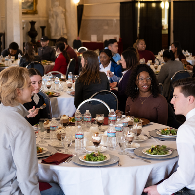 Today, the Regis Center for Internships and Career Development and Alumni Relations hosted the university’s first Career Accelerator to provide professional development and networking opportunities to undergraduate students. The day-long event consisted of a keynote address by Cindy Joyce '92, founder of Pillar Search and HR Consulting; career development sessions featuring mock interviews, resume reviews, LinkedIn tips, and more; and an etiquette lunch led by Amanda Donahue Salerno '13. The day concluded with a GOLD alumni panel, featuring graduates of the last decade sharing their experiences and answering questions, followed by a networking social with alumni.