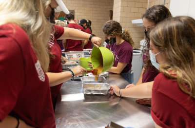 Stephanya Mendes ’25 and Madison Stevens ’25 put together school supply packages for children through Bethany Hill Place, which provides housing and learning opportunities for the community’s poorest and most marginalized individuals.