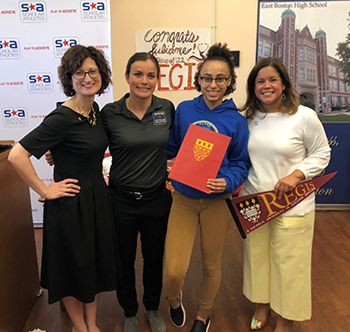 “We’re excited to welcome Juliane to our beautiful campus and look forward to watching this talented young woman pursue her education,” said Regis College President Antoinette Hays, PhD, RN. “Scholar Athletes is an incredible program that helps students fulfill their dreams of going to college every year.”