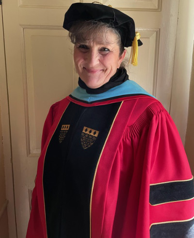 When Susan T. R. Eramo receives her EdD in May, she is sure to be thinking of her husband, the father of their eight children, ages 21 to 37, who passed away during the final year of her doctoral program. “He would have been happy to know that I will be the recipient of the Doctorate of Higher Education Leadership Award for Overall Excellence which encapsulates the personal goals I set for myself, and achieved in this program,” she writes, “none of which could have been done without my faculty, and specifically, the expert guidance of my major advisor, Dr. Heather Maietta.”