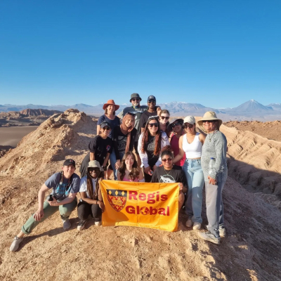 At the end of the spring 2023 semester, 11 Regis students participated in a 10-day, faculty-led immersion experience in Chile where they learned about the country's culture, history, socioeconomic conditions, and public health infrastructure. Part of a global public health course offered at Regis, students examined how culture and business affect health and environmental issues in the isolated northern desert region of San Pedro de Atacama. They also explored the economic and scientific activities carried out in the area, including mining and astronomy.