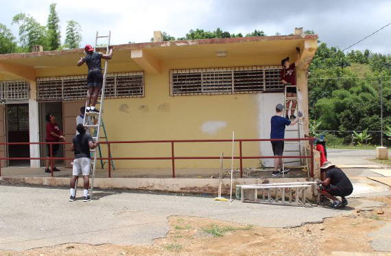 Volunteers also sorted donations and created donation bags for the Open Table food pantry and delivery program. Donated supplies were assembled for Bethany Hill Place Children’s Center in Framingham. And letters of encouragement were written to caregiving youths across the country through the American Association of Caregiving Youth (AACY). At several Catholic Charities of Boston-run shelters throughout Greater Boston, Regis volunteers helped to organize and clean the facilities. At Cradles to Crayons, volunteers sorted donated children’s clothing, and at St. Mary’s Center for Women and Children, a group re-painted a parking lot. For the Special Olympics, volunteers built boxes and filled them with items for partner organizations.