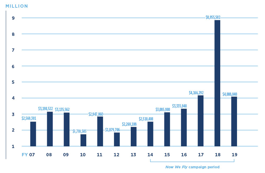Impact of the Now We Fly Campaign: Gifts and Grants to Regis FY07 to FY19
