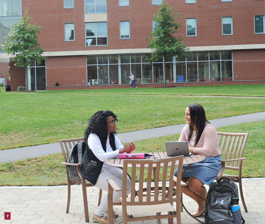 The campus quad is a vibrant centerpiece for campus life, often used for group study, community events, recreation, and outdoor classes. The Luben Plaza is between the quad and St. Joseph Hall, and was named in 2015 in honor of Mary and Joseph, parents of Patricia Luben O’Hearn ’64.
