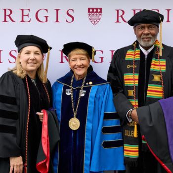 “There is great freedom to be found in forgiveness and abundant love,” she said. “To the graduates who have a dream and no idea how to make it a reality, trust you have been prepared by your courses and equipped with a valuable skillset and allow the Regis’ mission to guide you to lead a life worth living.”