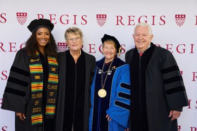 “We knew that in accepting each of you to Regis, you possessed the fortitude and ambition to thrive amid the unprecedented obstacles you faced,” said President Hays. “Your persistence has served you well at Regis and has prepared you for the personal and professional challenges you may encounter in life.”