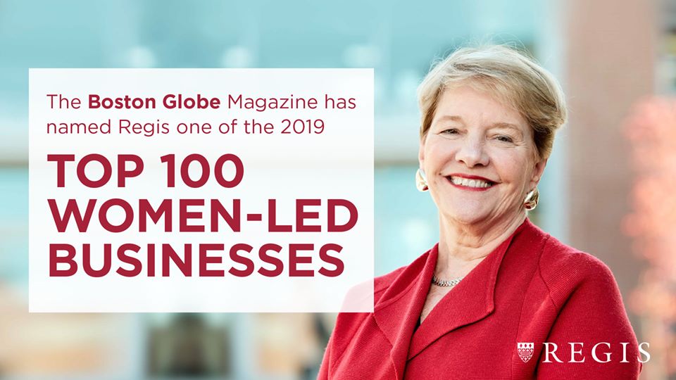For the second year in a row, Regis College has been named one of the Top 100 Women-Led Businesses by The Boston Globe and The Commonwealth Institute thanks to the great leadership of President Toni Hays.