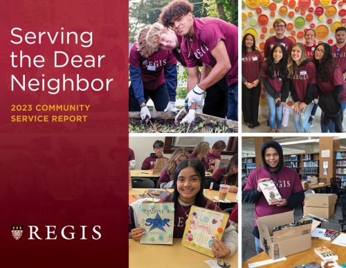 In 2023, Regis published its first annual Dear Neighbor Community Service Report that chronicles some of the service endeavors of the university community. This report will be published each year in January to share how Regis students, faculty and staff are impacting the local, regional, and international community.
