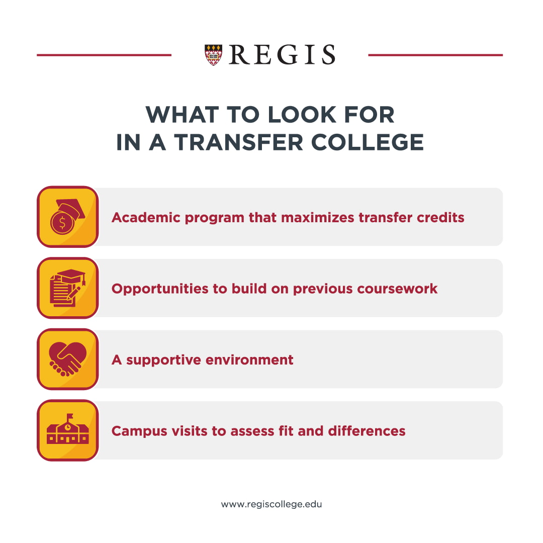 - The right academic program: Transfer students should consider an academic program that will maximize the work they’ve already done. “You’re going to want to pick an academic program that will take the most credits possible from your previous institution so you’re not losing out on the credits you’ve already earned,” says Patturelli.