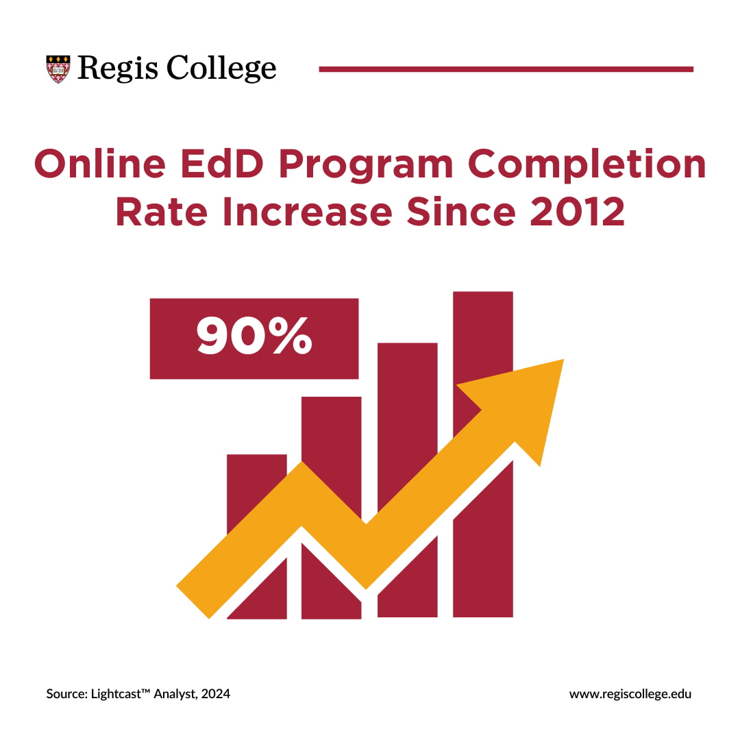 Regis' EdD in Leadership program stands out as an ideal choice for professionals looking to advance their careers in higher education, as well as in the K-12 space and other industries. The program offers two tracks: Higher Education Leadership and Organizational Leadership, allowing students to tailor their education to their specific career goals. With its comprehensive online format, Regis offers a unique blend of rigorous academic coursework and practical leadership training, all designed to be accessible and flexible for today's busy professionals.