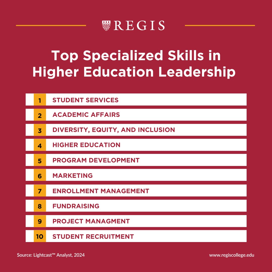 According to Lightcast data, EdD programs prepare students with specialized skills needed in various areas of higher education leadership such as: