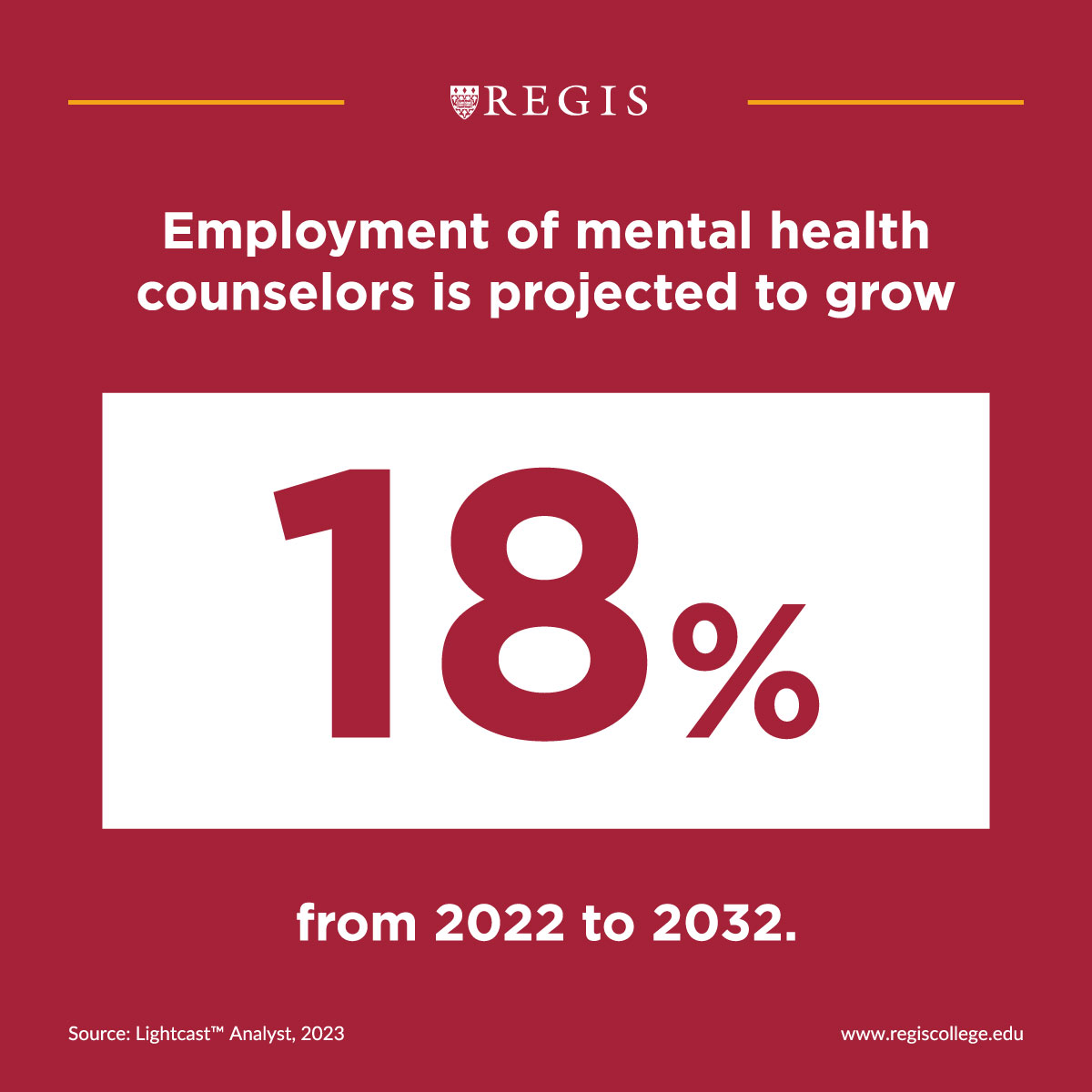 With an MA in Counseling, you’ll gain the skills and knowledge needed to succeed in this impactful and rewarding field. With the increasing importance of mental health awareness, there is a growing demand for qualified counselors. According to the U.S. Bureau of Labor Statistics, employment of mental health counselors is projected to grow 18 percent from 2022 to 2032, much faster than the average for all occupations.