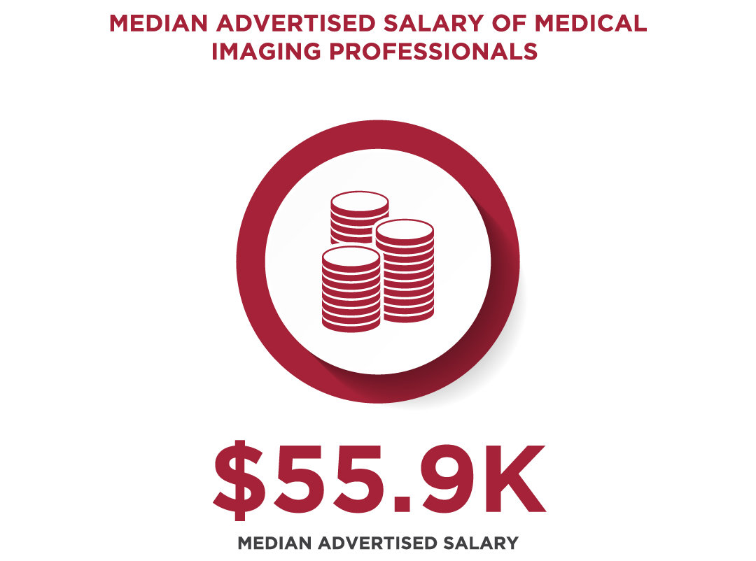 Medical imaging professionals earn an overall median salary of $55,936 according to labor insights data. However, earning a bachelor’s degree can lead to higher earning positions, including those that are listed above. For example, the median salary of a radiologic technologist is $66,944.