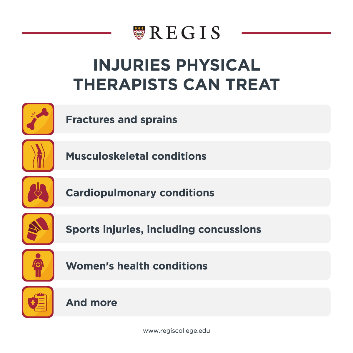 These programs often take three years to complete, and most require that applicants have completed a bachelor’s degree in a related field prior to admission. Some colleges, like Regis College, offer pre-physical therapy programs specifically designed to prepare undergraduate students for the challenges of graduate school.