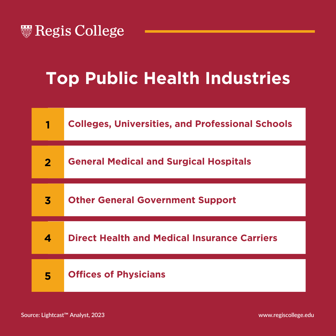 According to our analysis of job postings data, the top industries hiring public health degree holders include:
