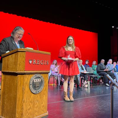 It was an honor to celebrate the extraordinary academic achievements of more than 100 students who have worked tirelessly to earn the distinction of being inducted into one of Regis’ official National Honor Societies this week. Congratulations to Lillian Wehmeyer '25 (below, top) for receiving the Maria Leonard Book Award for earning the highest GPA over the past four years. And to Levi Dunlap '25 (below, bottom) for receiving the Mary C. Bryan Award in Women's Studies for demonstrating exemplary scholarship that enhances the understanding of women’s or gender studies.