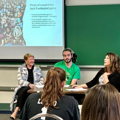Thanks to the Carole Remick ’54 Charitable Foundation grant to The Regis Herald, Naomi and Valerie Amicangioli '25, Humanities major and Regis Herald editor and writer, attended the 2025 Boston University Power of Narrative Conference in March. They met renowned keynote speakers, pictured here: award-winning author and journalist Susan Orlean and trailblazing TV journalist and anchor Connie Chung.